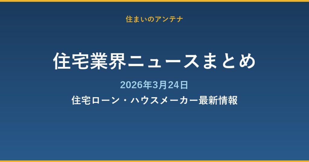 【2026年3月24日】住宅業界ニュースまとめ|住宅ローン・ハウスメーカー最新情報