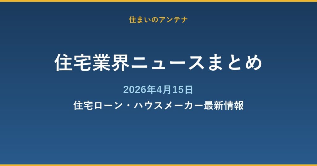 【2026年4月15日】住宅業界ニュースまとめ|住宅ローン・ハウスメーカー最新情報
