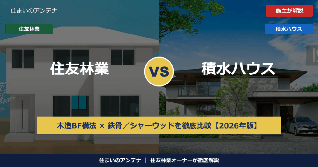 注文住宅を検討する際、「住友林業と積水ハウス、どっちがいい?」は非常に多い比較検討パターンです。両社とも業界を代表するハイブランドですが、住友林業は「木造一本(BF構法)」、積水ハウスは「軽量鉄骨/重量鉄骨/木造(シャーウッド)の3系統」を...