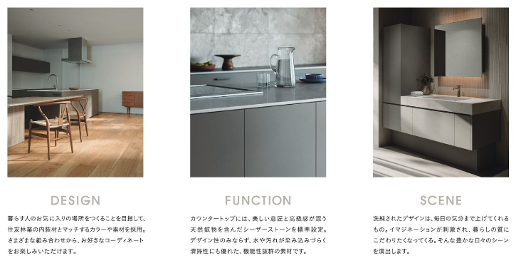 • 住友林業の内装材とマッチ: 床材や建具などの内装材とマッチするカラーや素材が採用されており、トータルコーディネートが容易です。