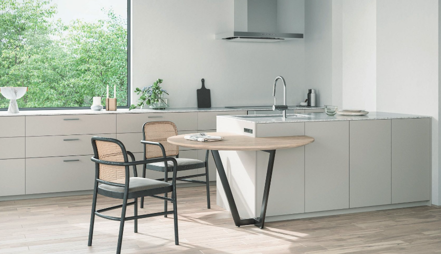 扉の「グレージュ」がアクセントとなり、生活を軽やかに彩ります。