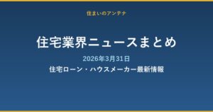 2026年4月は住宅業界にとって重要な変化が重なる時期となりました。住宅ローンでは変動金利の平均が15年ぶりに1%を超え、フラット35も2.49%と上昇しており、金利面での慎重な判断が求められます。一方でフラット35の融資限度額が1兄1,2000万円に拡充されたことや、みらいエコ住宅2026の申請受付開始など、省エネ住宅を購入・建築する方へのサポート制度も整備が進んでいます。LIXIL・YKK APの新商品など、住宅業界全体の脱炭素・高付加価値化の動きも継続しています。住宅購入を検討している方は、金利動向と補助金情報を組み合わせて、最適な住宅取得のタイミングを見極めることが重要です。