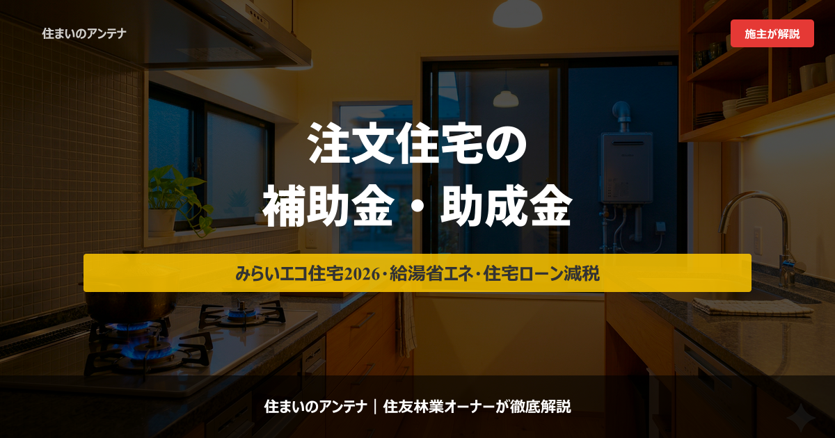 この記事では、住友林業オーナーであるアンテナ主が、2026年に使える主要な補助金・助成金を徹底解説します。みらいエコ住宅2026事業・給湯省エネ補助金・住宅ローン減税の最新情報から、補助金の併用方法・申請スケジュールまで網羅していますので、ぜひ参考にしてください。