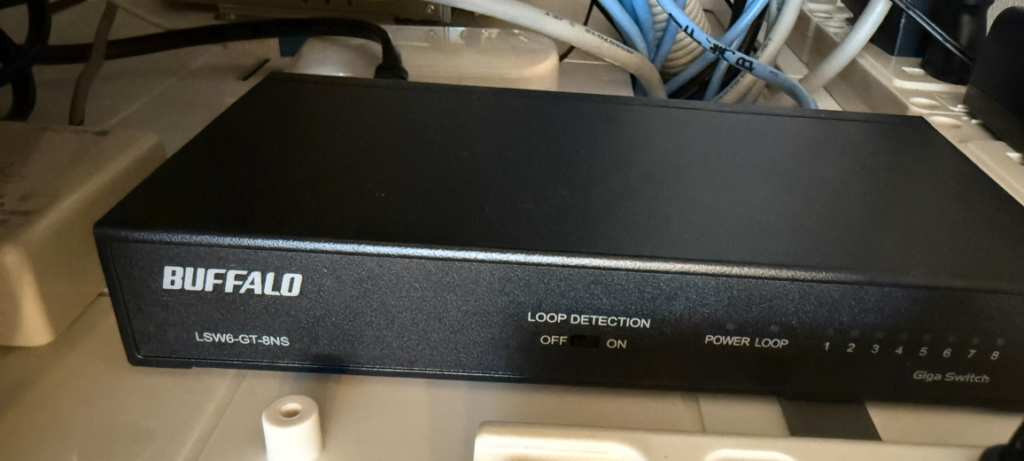 実際、我が家の情報分電盤ではバッファロー社製のスイッチングハブを介して各部屋に分配していましたが、10G非対応でした。これではせっかく10Gの光回線を導入しても実力を発揮しきれません。