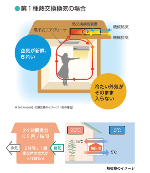 オプション①:第一種換気「e-kikubari」(全熱交換型)