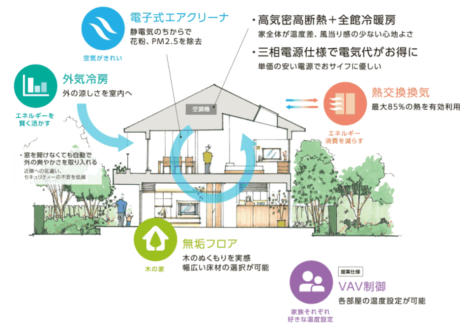 断熱・気密性能を活かすうえで、換気方式の選択は非常に重要です。せっかく高断熱の家を建てても、換気で熱を逃がしてしまっては本末転倒。ここでは住友林業で導入できる換気システムを解説します。