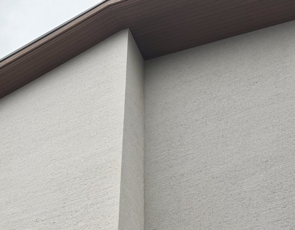 塗装は「下地モルタル → 下塗り → 中塗り → 上塗り(シーサンドコート)」の入念な3層構造で、防水性・耐久性・質感のすべてを高いレベルで両立しています。